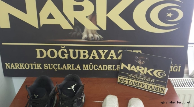 Ağrı İl Emniyet Müdürlüğü Narkotik Suçlarla Mücadele Şube Müdürlüğünce Doğubayazıt ilçesinde yapılan çalışmalar sonucunda ayakkabı içerisine zulalanmış 522,40 gram metamfetamin ele geçirilmiştir.