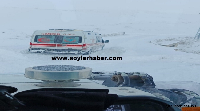 Doğubayazıt Kaymakamlığına gelen ihbar üzerine, İlçe Özel İdare ekipleri ve 112 Acil Sağlık ekipleri, köylerde mahsur kalan acil hastalara ulaşmak için kar, tipi ve zorlu hava koşullarına rağmen seferber oldu.