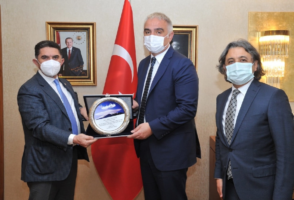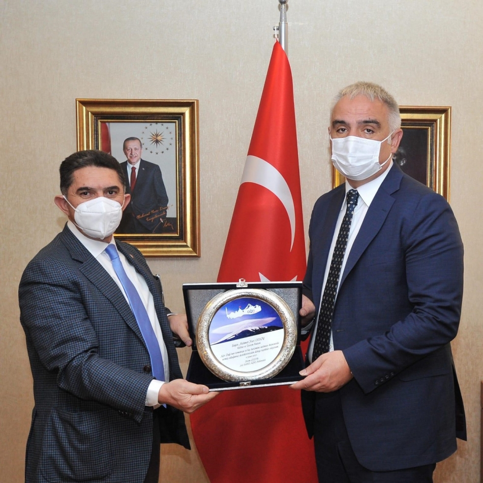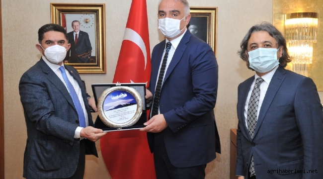 Ağrı Ak parti Milletvekili Ekrem Çelebi Kültür ve Turizm Bakanı Mehmet Nuri Ersoy'a tarihi ve kültürel zenginliklerin beşiği olan Ağrı'ya verdikleri desteklerinden dolayı, Dağcılık Federasyonu Başkanı ile birlikte teşekkür ziyaretinde bulundu.