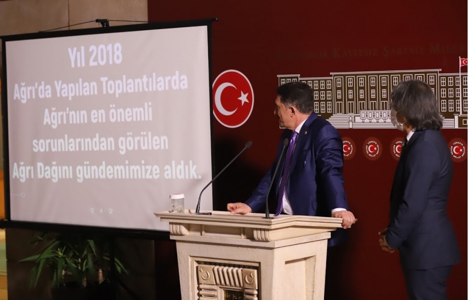 TBMM’de Dağcılık Federasyonu Başkanı ile birlikte, Ağrı ilinin kış turizmi tanıtımına katkı sağlayacak Ağrı Dağı’nın tırmanışa açılmasına yönelik basın toplantısı gerçekleştirdi.