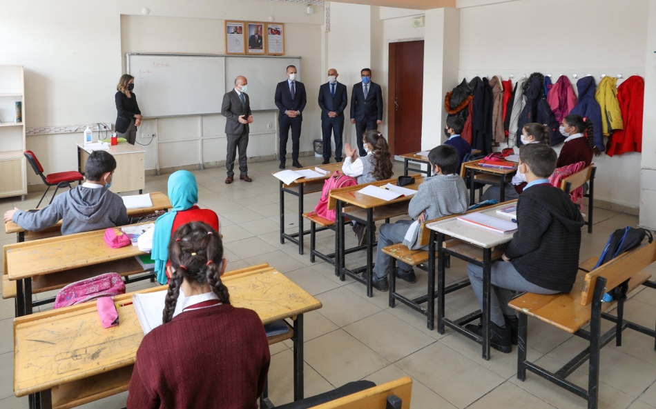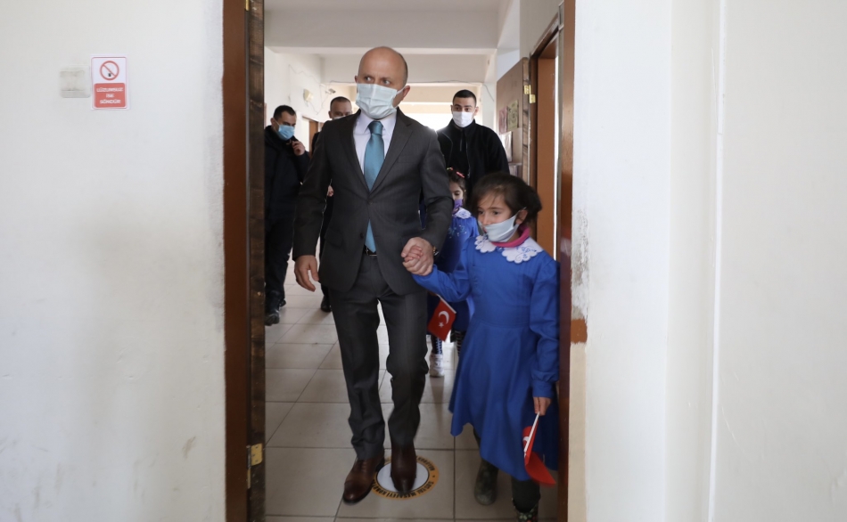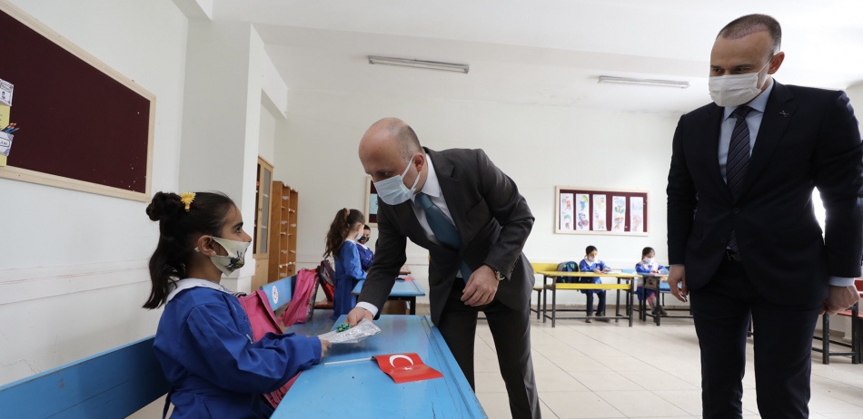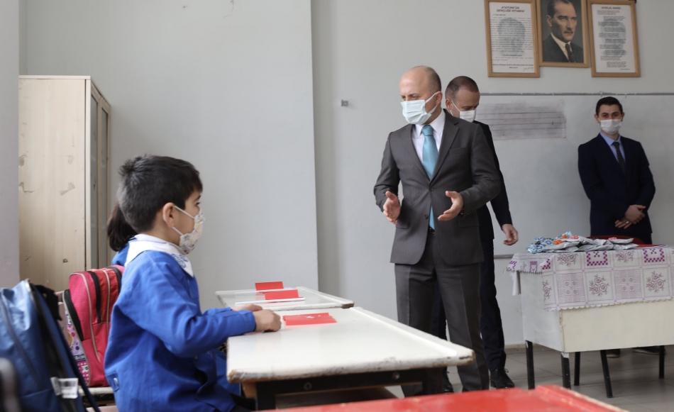 Daha sonra Vali Varol, okullarına, arkadaşlarına ve öğretmenlerine kavuşan çocuklarımızı sınıflarında ziyaret ederek, çeşitli hediyeler verip, gelecek hedefleri hakkında bir süre sohbet etti. Ardından okulda incelemelerde bulunan Vali Varol, okulun fiziki imkanları, kapasitesi ve personel durumuna ilişkin yetkililerden bilgi aldı.