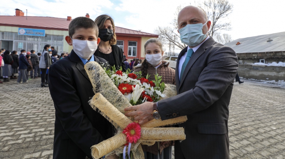 Vali Dr. Osman Varol, Karasu İlk ve Ortaokulunu ziyaret ederek öğretmen ve öğrencilerle bir araya geldi.