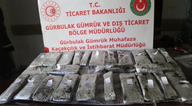 Narkotik dedektör köpeğinin çamurluklara tepki vermesi üzerine Gürbulak Gümrük Muhafaza Kaçakçılık ve İstihbarat Müdürlüğü ekiplerince söz konusu bölgede arama yapıldı.