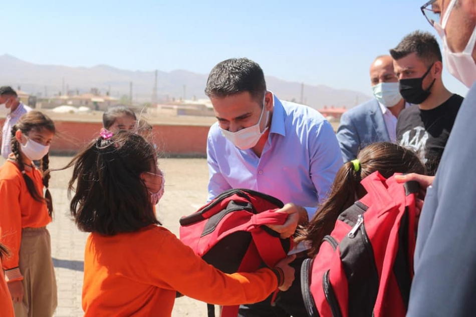 Doğubayazıt Kızılay Şubesi Onursal Başkanı olan İlçe Kaymakamı Mehmet Kemal Akpınar, Kızılay gönüllüleri ile birlikte öğrencilere çanta ve kırtasiye malzemelerinin dağıtımını gerçekleştirdi.