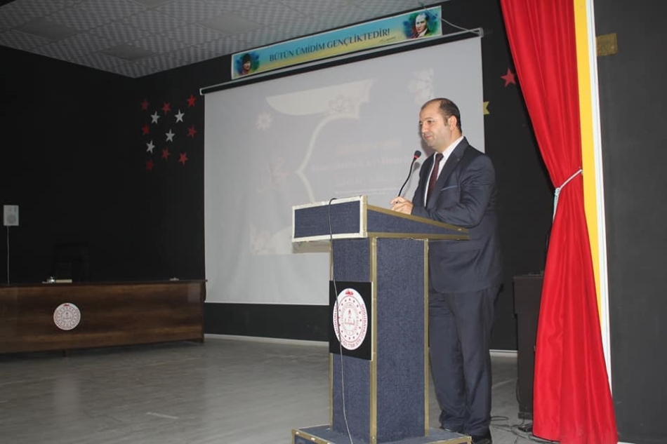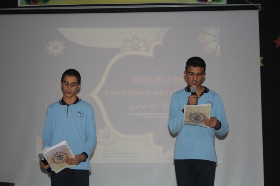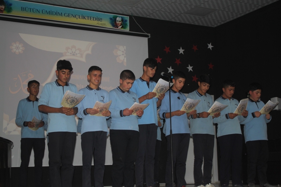 Medine Müdafii Fahrettin Paşa Anadolu İmam Hatip Lisesi Müdürü Cemal Ersü, meslek dersleri öğretmenleri ve okul öğrencileri tarafından "Mevlid-i Nebi Haftası" etkinliği kapsamında Peygamber Efendimiz'i (SAV) anmak amacıyla Doğubayazıt İlçe Milli Eğitim Müdürlüğü konferans salonunda program düzenlendi.Programa Doğubayazıt İlçe Milli Eğitim Müdürü İhsan Kösen, Ağrı Dağı Gazeteciler Cemiyeti Başkanı AK Parti Doğubayazıt Belediye Meclis üyesi Sıddık Söyler, Esnaf ve Sanatkarlar Oda Başkanı Günay Erdoğan, Mil Diyanet Sen Başkanı M. Emin İçten, Doğubayazıt Engelliler Dernek Başkanı Oktay Topçu, din adamları, okul müdürleri, kamu kurum amirleri, öğretmenler, veliler ve öğrenciler katıldı.
