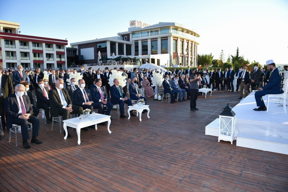 Diyanet İşleri Başkanı Prof. Dr. Ali Erbaş’ın dualar ile kıydığı nikah ve hafızlar tarafından okunan Kur’an’ı Kerim tilavetleriyle nikahları kıyılan geçlerin ve ailelerin mutlulukları gözlerinden okunuyordu.