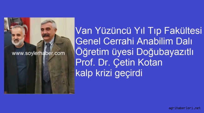Van Yüzüncü Yıl Üniversitesi Dursun Odabaş Tıp Merkezi'nde görev yapan Doğubayazıtlı hemşehrimiz Prof. Dr. Çetin Kotan kalp krizi geçirdi.