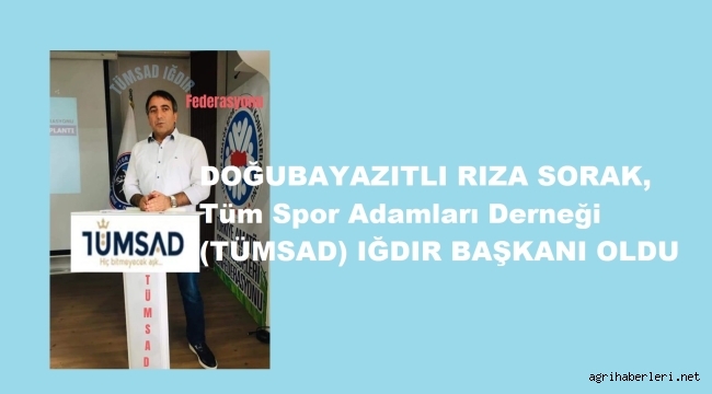 Tüm Spor Adamları Derneği (TÜMSAD) Iğdır gerçekleştirilen 2.Olağan Genel Kurulda aday olan Doğubayazıtlı Rıza Sorak, Iğdır TÜMSAD Başkanlığına seçildi.