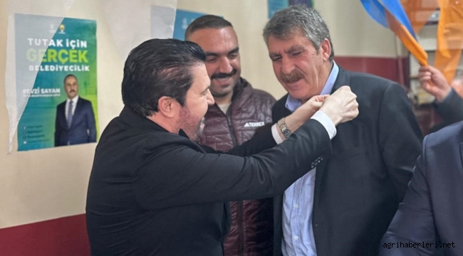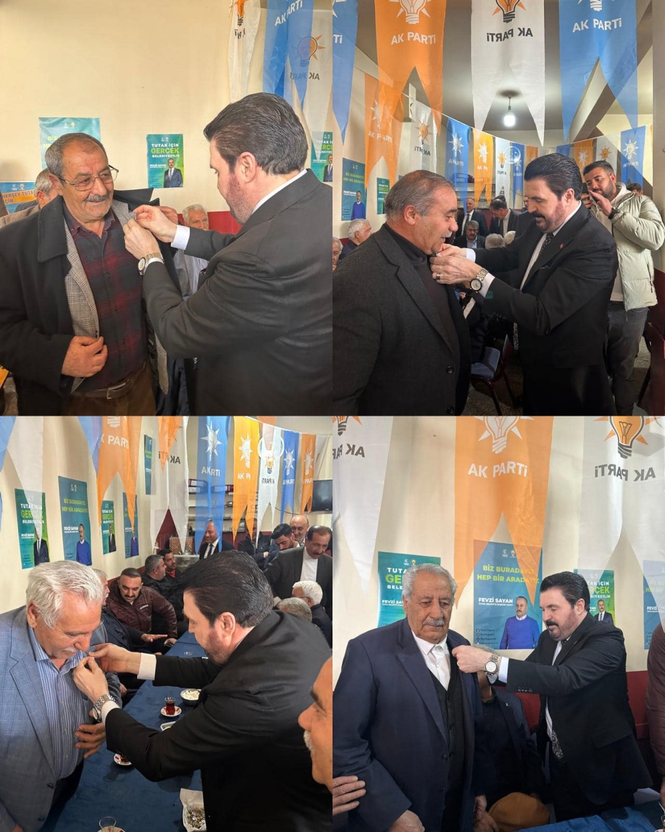 Savcı Sayan, AK Partiye katılım sağlayan Memleket Partisi ve DEVA Partili Tutak’lı hemşehrilerine kendi elleriyle AK Parti rozeti taktı.