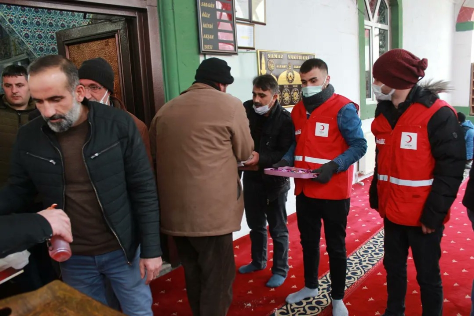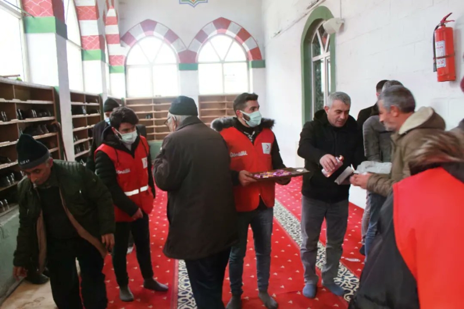 Mevlit programına katılan herkese gül suyu ve lokum dağıtıldı.