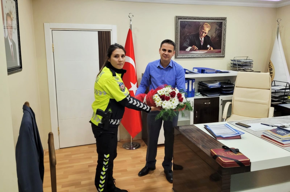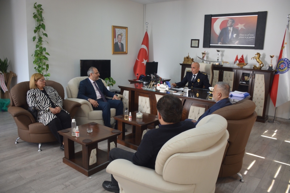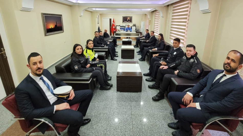 Türk Polis Teşkilatı'nın 177. kuruluş yıl dönümü ve Polis Haftası dolayısıyla İlçe Emniyet Müdürü Şükrü Solak ve beraberindeki heyet, İlçe Kaymakamı Mehmet Kemal Akpınar'ı makamında ziyaret etti.