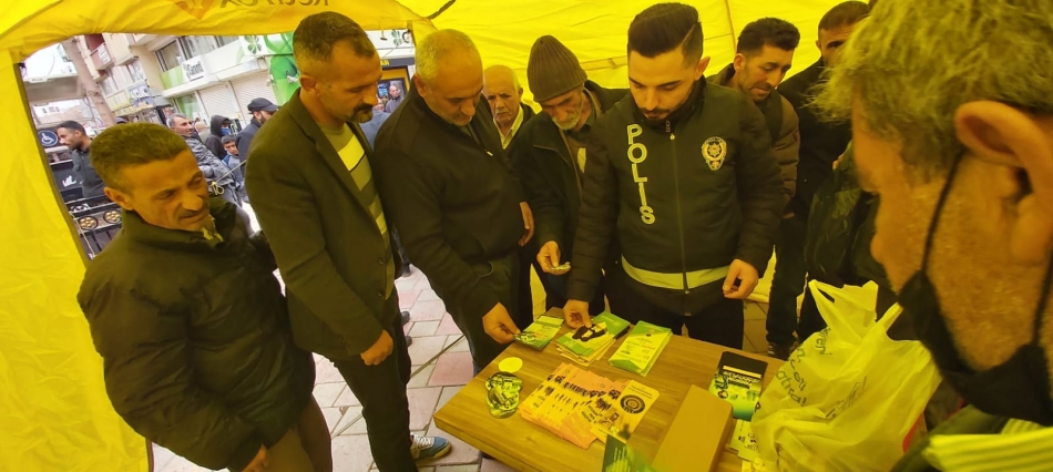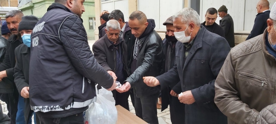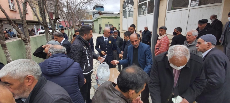 Mevlitten sonra camii çıkışında vatandaşlara kolonya ve çikolata ikramı yapıldı. İlçe merkezinde kurulan çadırda vatandaşları bilgilendirmek için el broşürleri dağıtıldı.