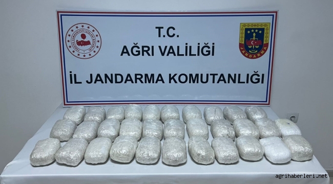 Ağrı İl Jandarma Komutanlığı ve Telçeker 3’üncü Hudut Tabur Komutanlığınca yapılan çalışmalar neticesinde Doğubayazıt ilçesinde 31.587 gram metamfetamin ele geçirildi.