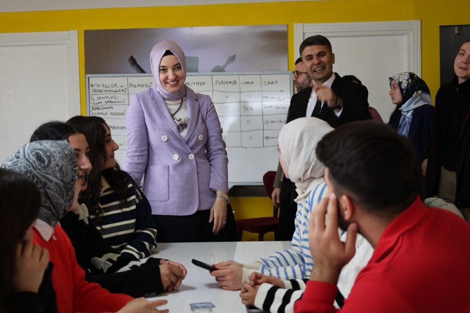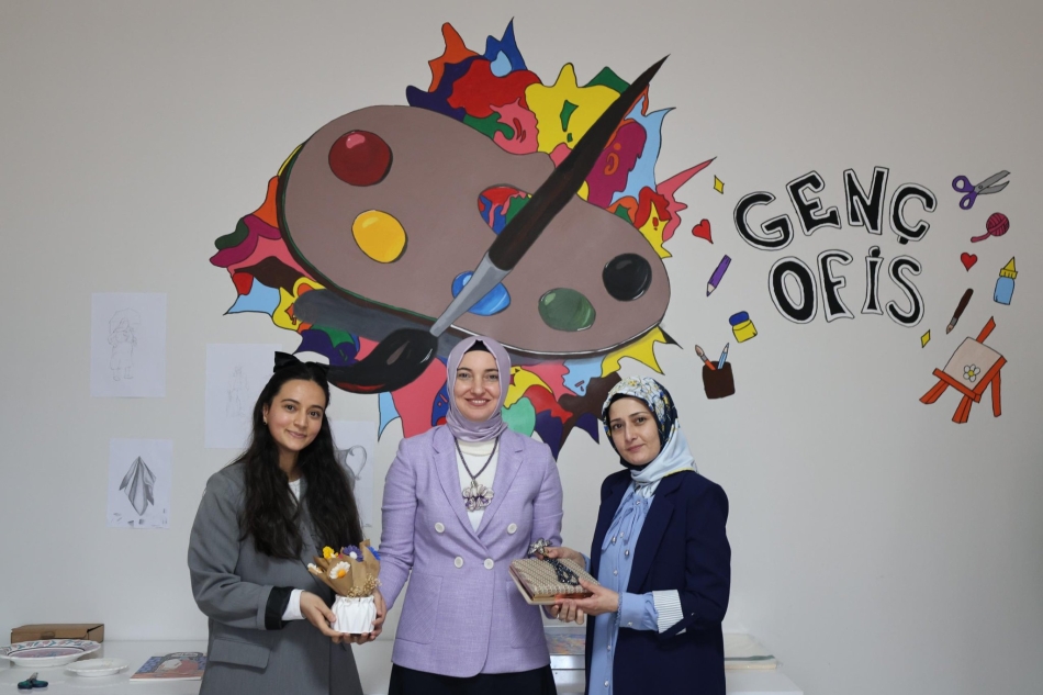 Ziyaret kapsamında, üniversite öğrencileri ve gençlere yönelik olarak Genç Ofis'te açılan el sanatları, kişisel gelişim ve mesleki eğitim kurslarına katılan gençlerle sohbet eden Neslihan Gül Koç, yürütülen çalışmalar hakkında yetkililerden bilgi aldı.