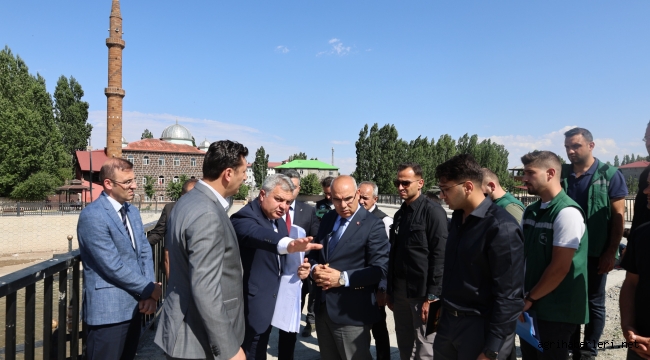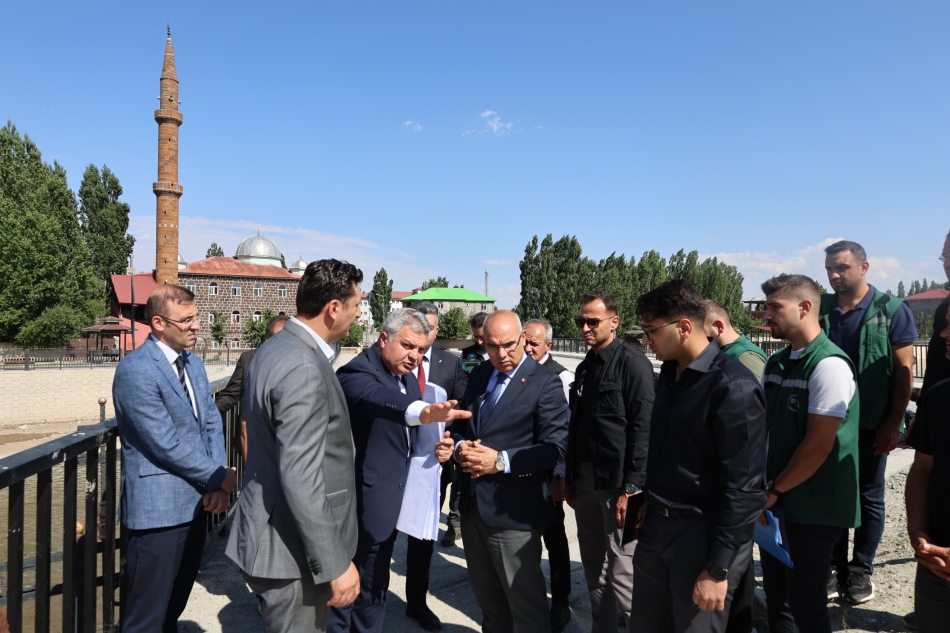 Ağrı Valisi Mustafa Koç, Devlet Su İşleri (DSİ) 8. Bölge Müdürü Oğuzhan Yavuz ve teknik ekibiyle bir araya gelerek, il genelinde devam eden köprü inşaatı ve dere ıslah projelerini yerinde inceledi. Yapılan çalışmaların bölge ulaşımına ve çevre düzenlemesine katkı sağlaması hedefleniyor.