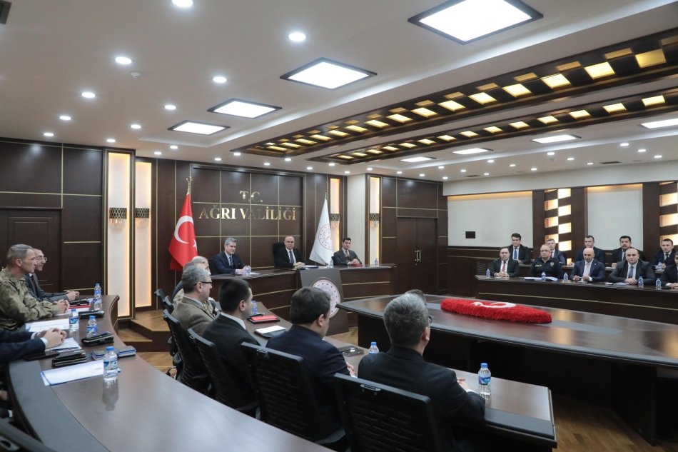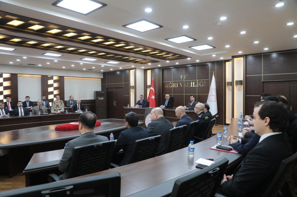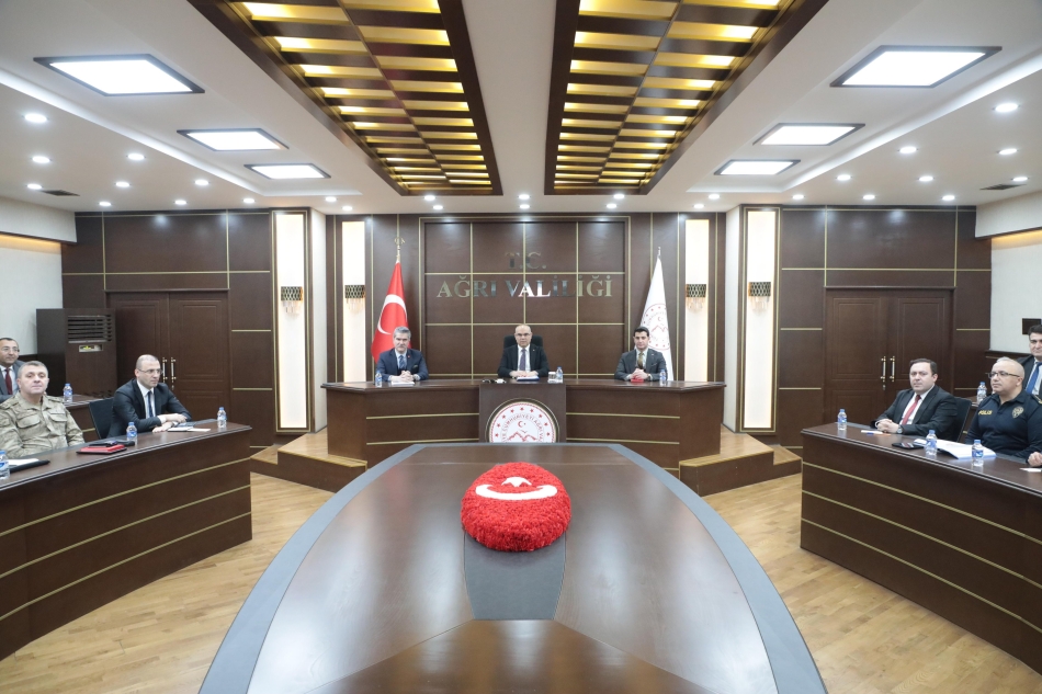 Ağrı Valisi Mustafa Koç, Başkanlığında Asayiş ve Güvenlik Bilgilendirme Toplantısı Gerçekleştirildi. Toplantıya; Ağrı Valisi Mustafa Koç, Ağrı Vali Yardımcıları, Doğubayazıt Kaymakamı Murat Ekinci, Diyadin Kaymakamı Mustafa Karali, Taşlıçay Kaymakamı Emirhan Arıkan, Eleşkirt Kaymakamı Ömer Saygılı, Hamur Kaymakamı Mehmet Nesip Mahir, Tutak Kaymakamı Erkan Adıbelli, Patnos Kaymakamı Hasan Taş, Ağrı Cumhuriyet Başsavcısı Adem Çalış, İl Jandarma Komutanı Tuğgeneral Fatih Cemil Kiper ve İl Emniyet Müdürü Yılmaz İpar ve Ağrı Valiliği bünyesindeki bazı birimler katıldı.