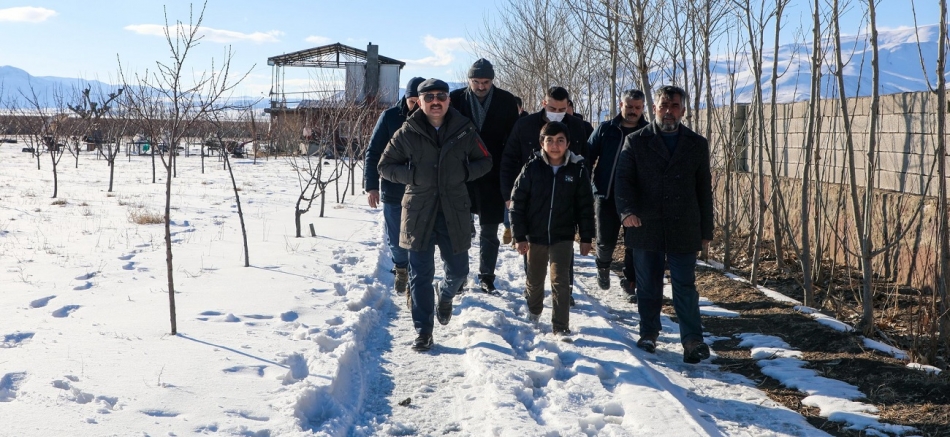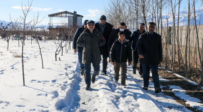 Ağrı Valisi Varol Doğubayazıt’da Örtülü köyüne giderek meyve bahçesini gezdi.